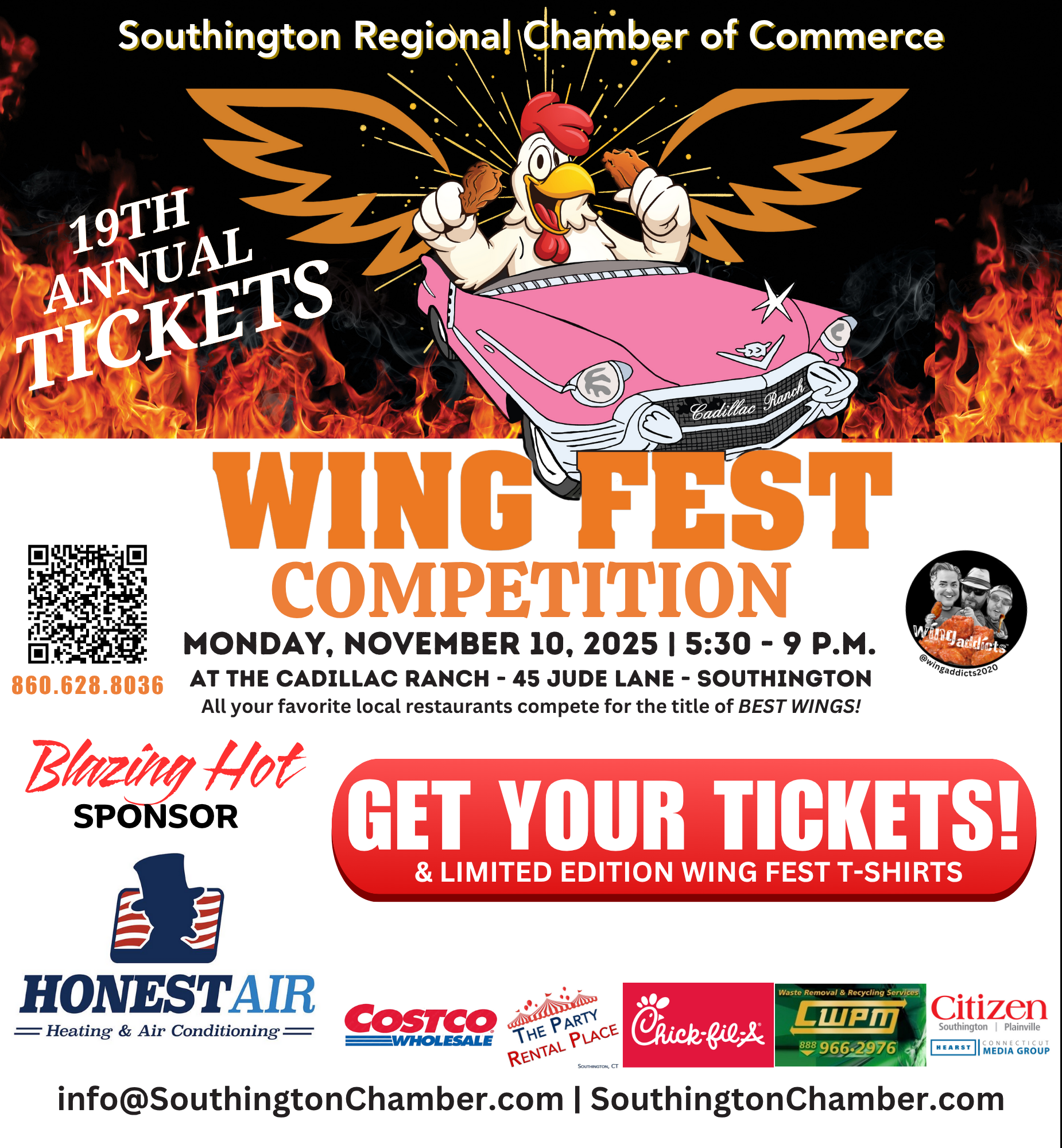 19th ANNUAL Southington Chamber WING FEST COMPETITION – sponsored by Honest Air LLC – November 10, 2025
