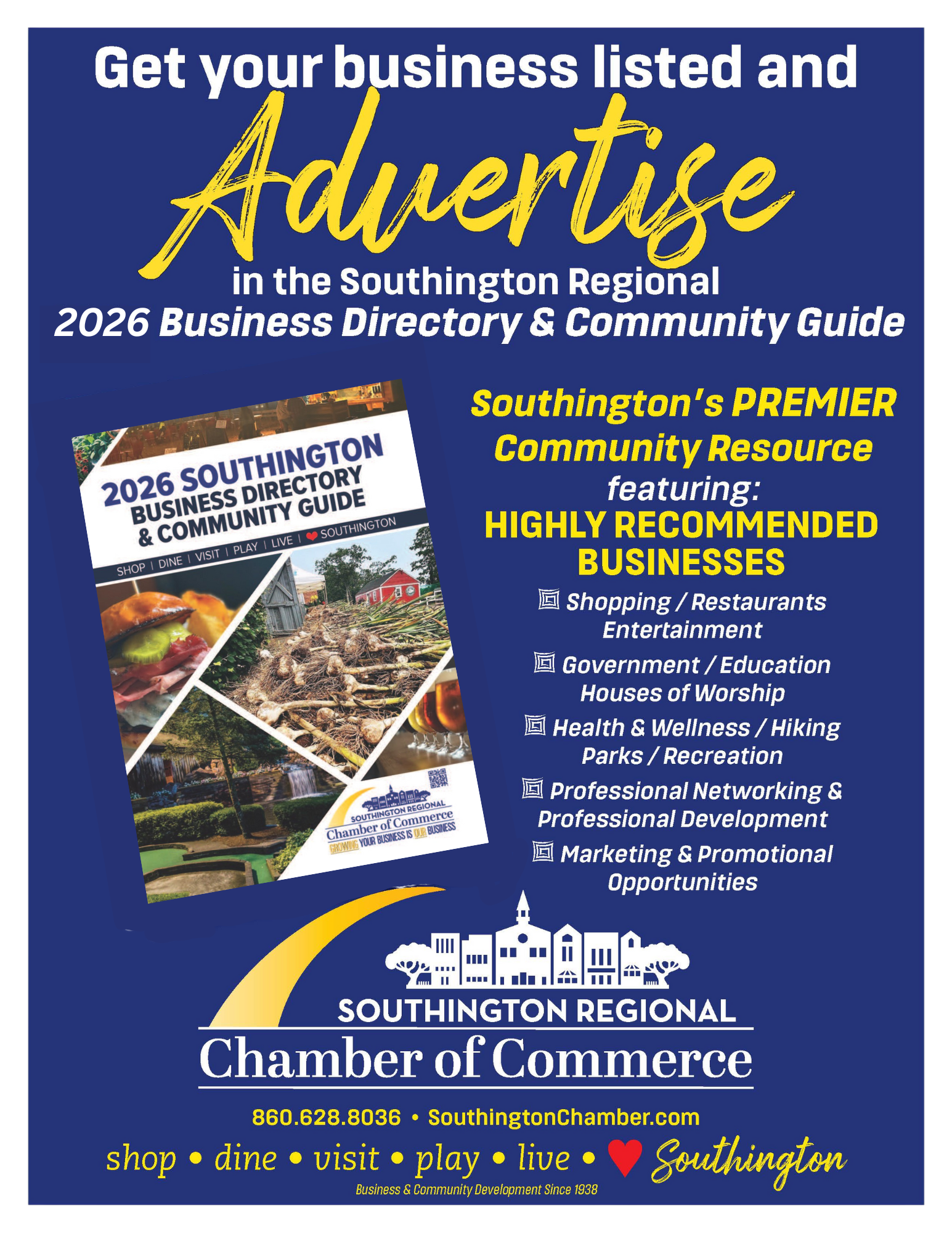Not a Chamber Member yet? Join today to get your business listed for FREE in the 2026 Southington Regional Business Directory & Community Guide!