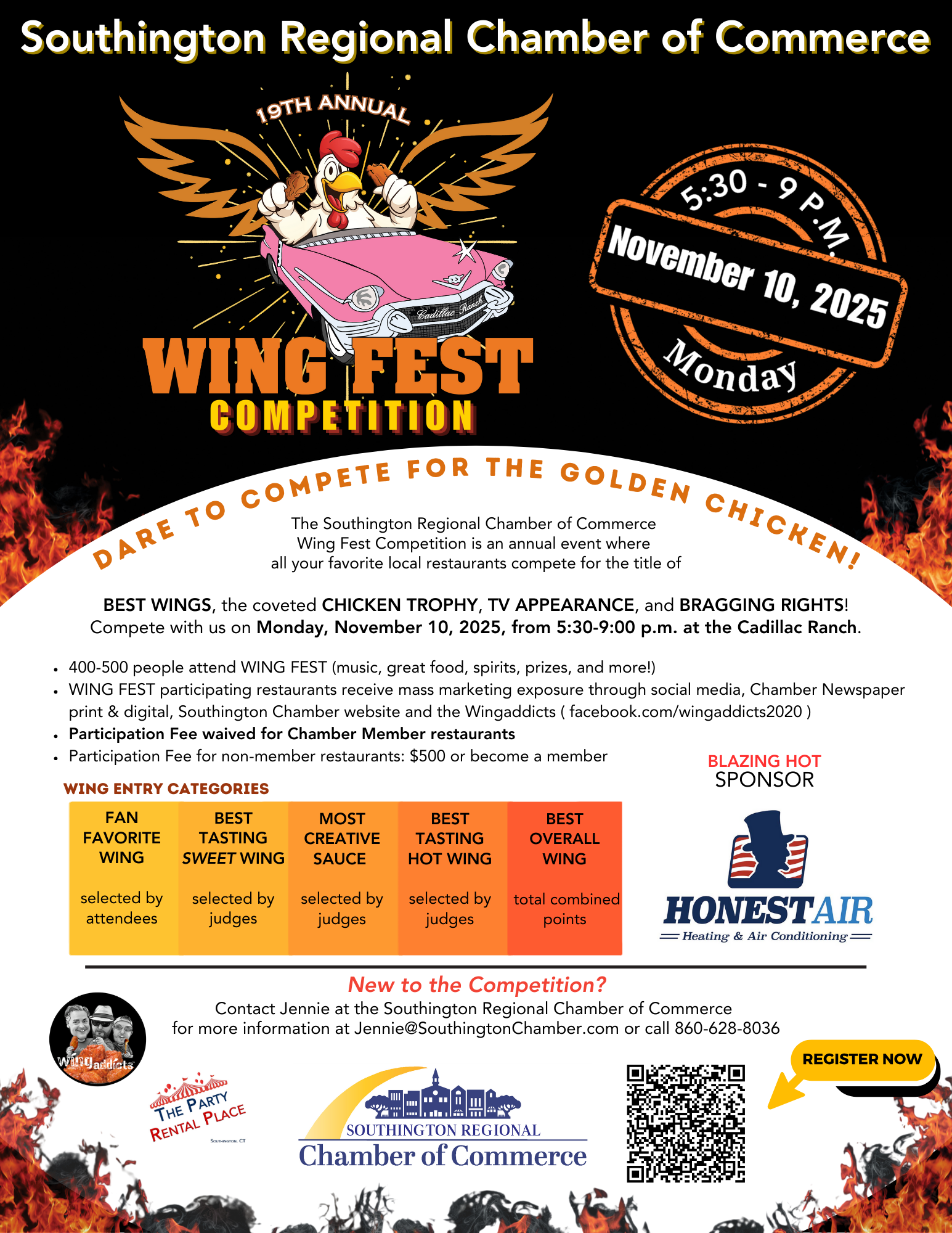 Contact Jennie at the Southington Regional Chamber of Commerce for additional information about the competition by emailing Jennie@SouthingtonChamber.com or by calling 860-628-8036.