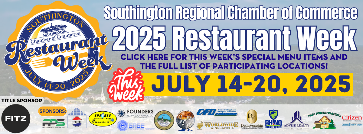 Southington Restaurant Week is a signature program of the Southington Regional Chamber of Commerce. Written permission must be requested for use in any form of the Southington Restaurant Week logo or program participation promotion. Restaurants, bakeries, breweries, bars, and confections that would like to participate may contact the Southington Regional Chamber of Commerce at 860.628.8036 or by emailing info@southingtonchamber.com. All participants must be a Chamber member in good standing to participate. Membership applications may be found here and completed and emailed to Jennie@southingtonchamber.com in order to participate.
